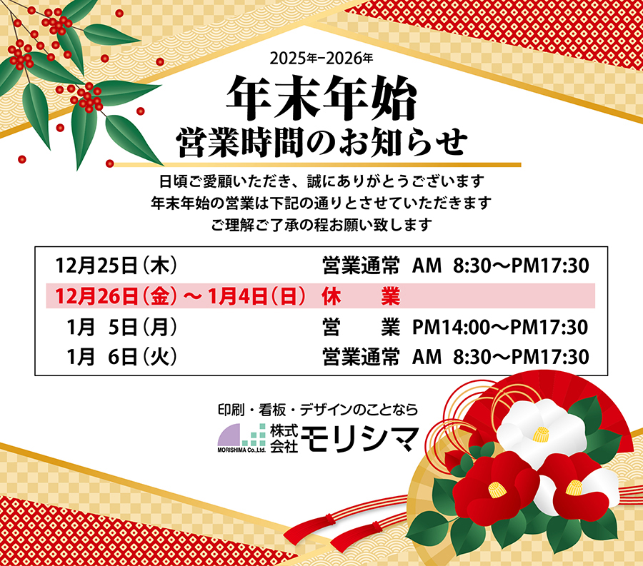 2025-2026年末年始の営業時間のお知らせ